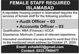 Apply for Audit Officer and Accounts Officer positions at a reputable Housing Project in Islamabad.…