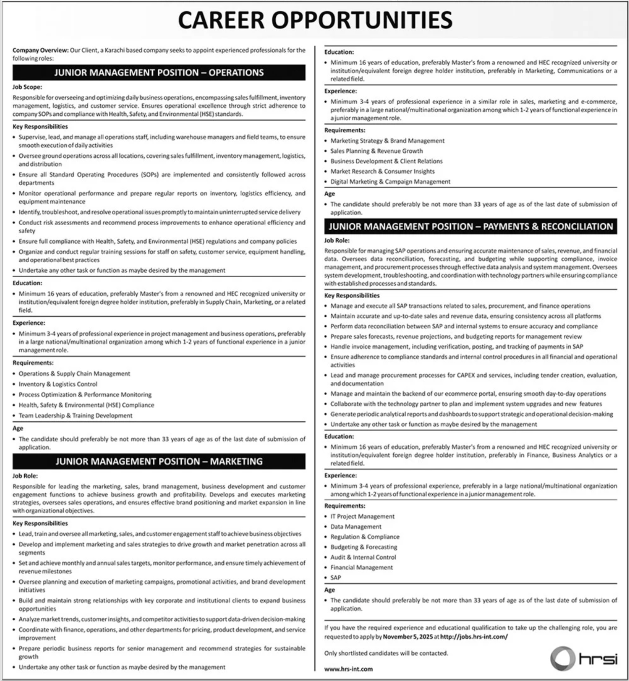 Apply for Junior Management (Operations), Payments & Reconciliation and other managerial roles at Human Resource…