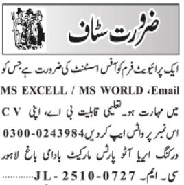 Apply for Office Assistant jobs 2025 in Badami Bagh, Lahore. Private firm seeks BA graduates…