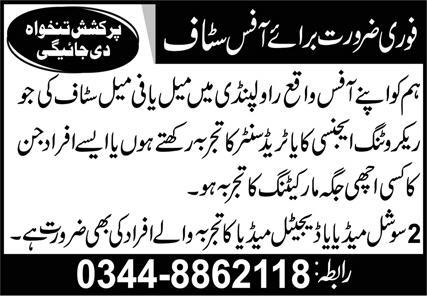 Private Company Rawalpindi is hiring male and female office staff including social media/digital media personnel.…