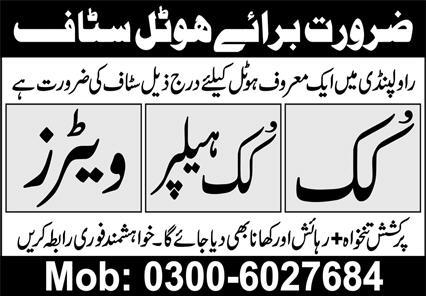 Apply for Cook, Waiter and Cook Helper vacancies in Rawalpindi (Hotel) — Attractive salary with…