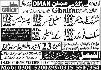 Apply for Scaffolder, Shuttering Carpenter, Steel Fixer, Plaster Mason & Skilled Helper jobs in Muscat,…