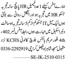 Apply for HR Officer and HR Manager vacancies in a Private Company located in Baloch…