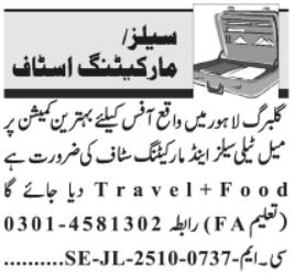 Apply for Telesales and Marketing Staff jobs in Gulberg, Lahore (2025). Commission-based pay with travel…