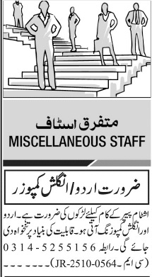 Private Company in Islamabad seeks English & Urdu Composers (Computer Staff). Apply by 4 November…