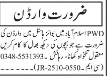 Apply for Hostel Warden and Hostel Staff positions in PWD Housing Scheme, Islamabad. Matric required.…