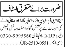 Private Company in Saddar, Rawalpindi is hiring guards, helpers, sweepers, data entry operators and supervisors.…