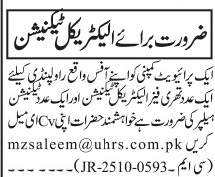 Apply for Electrical Technician and Technician Helper positions in Rawalpindi (Jang Classifieds 20 Oct 2025).…