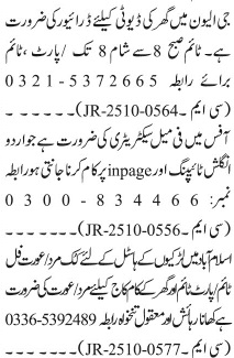Apply for multiple admin and household staff positions in G-11, Islamabad (Drivers, Female Secretary, Cook,…