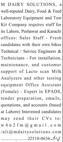Apply for M Dairy Solutions vacancies 2025 in Lahore, Peshawar & Karachi. Positions: Sales Staff,…