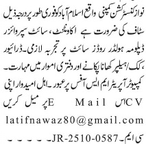 Apply for Nawaz Construction Company (Islamabad) jobs 2025 — cook, helper, driver, accountant, site supervisor…