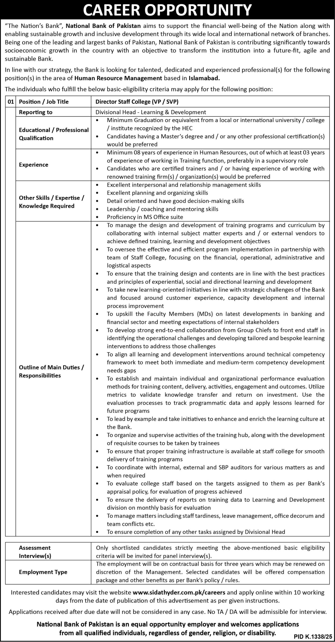 Apply for Director Staff College at National Bank of Pakistan (NBP) Islamabad. Read eligibility, responsibilities,…