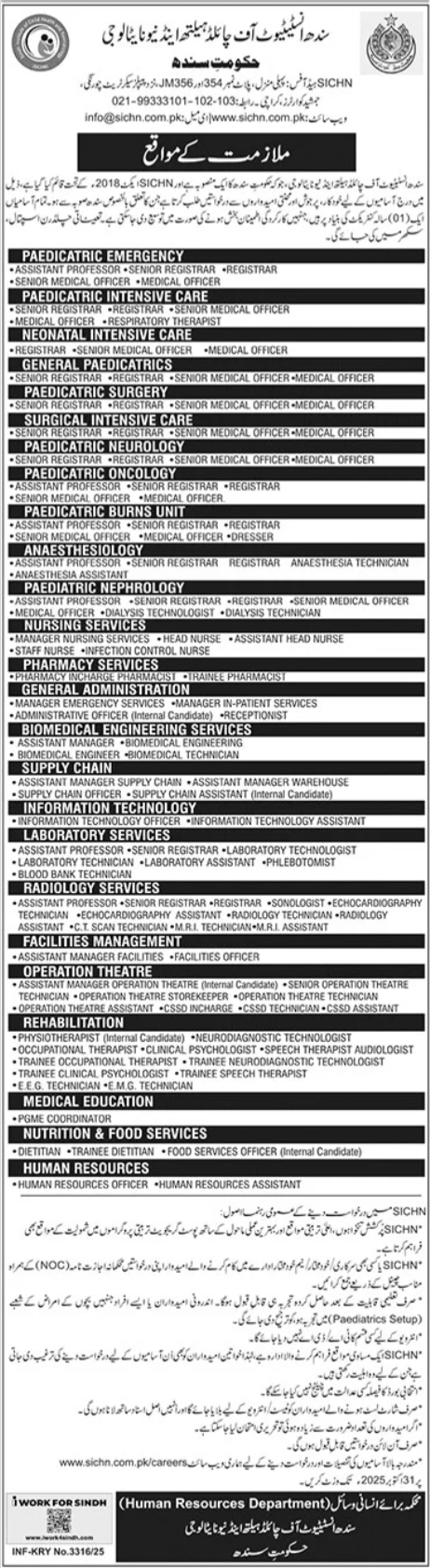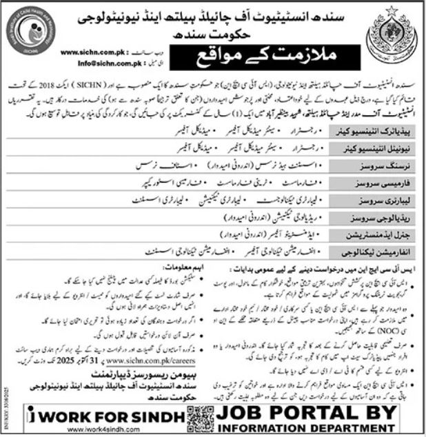 Apply for Sindh Institute of Child Health & Neonatology (SICHN) jobs 2025 in Karachi &…