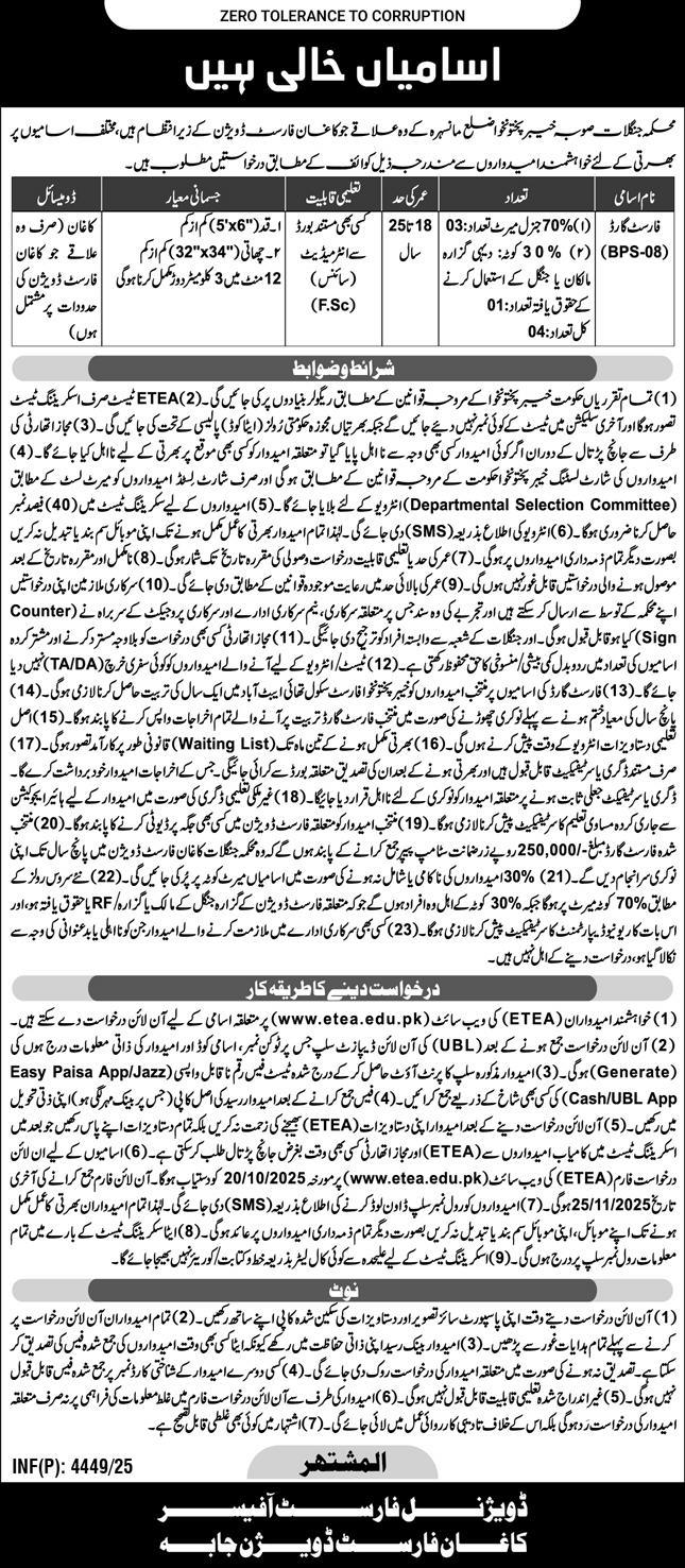 Apply for Forest Guard (BPS-08) positions in Kaghan Forest Division, Mansehra — Forestry Environment &…