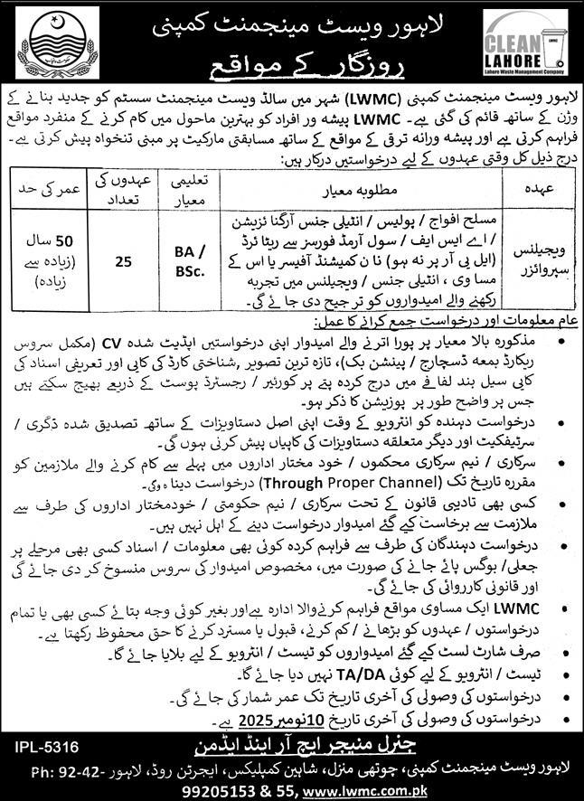Apply for Vigilance Supervisor positions at Lahore Waste Management Company (LWMC) 2025. 25 vacancies in…