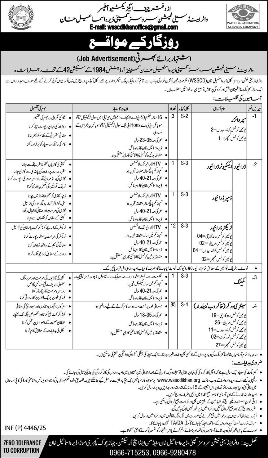 Water & Sanitation Services Company WSSC DI Khan Jobs 2025