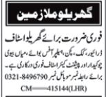 Apply for Cook, Office Boy and other House Staff jobs in Lahore (2025). Vacancies for…