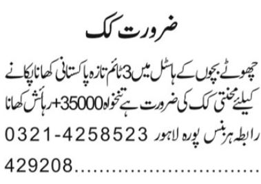 Apply for Hostel Staff (Chef & Cook) jobs in Harbanspura, Lahore. Salary PKR 35,000 +…