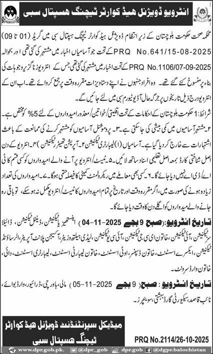 Apply for multiple medical & support staff vacancies at Divisional Headquarters Teaching Hospital Sibi (2025).…