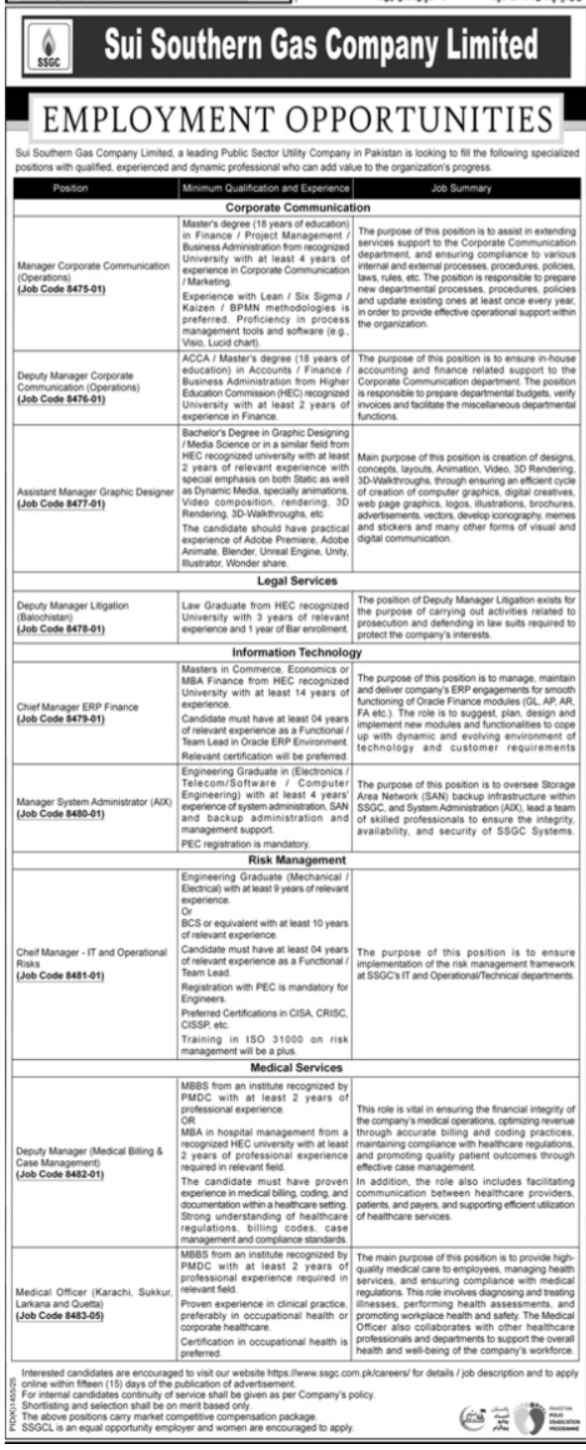 Apply for Sui Southern Gas Company Limited (SSGC) jobs in Karachi 2025. Vacancies include Manager…