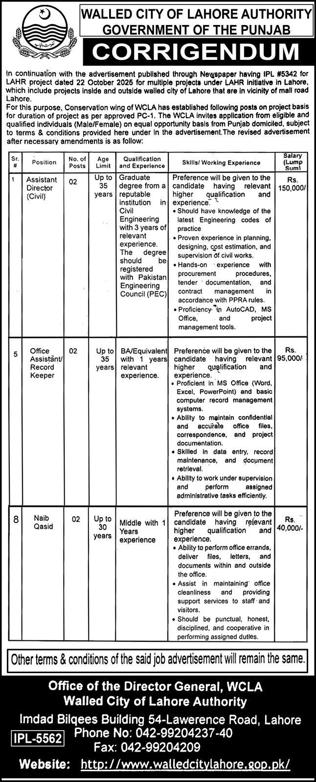 Walled City of Lahore Authority (WCLA) invites applications for multiple project-based vacancies in Lahore. Apply…