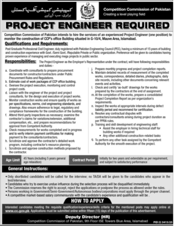 Project Engineer Jobs at Competition Commission of Pakistan 2025