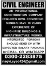 Apply for Civil Engineer & Engineer positions at an international Construction Company in Karachi. Bachelor/Master/MS…