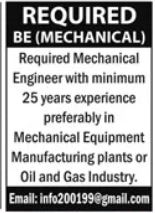 Apply for Mechanical Engineer jobs at Oil & Gas Industries Karachi. Bachelor (BE Mechanical) holders…