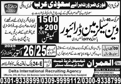 Apply by 26 October 2025 for Van Salesman Driver & Driver positions with Delta International…
