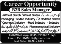 Apply for B2B Sales Manager at a leading Textile Industry in Lahore. Intermediate to Bachelor…