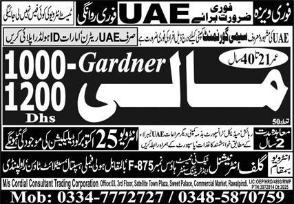 Apply for Mali (Gardener) vacancies at Gulf International Trade Test Center, Abu Dhabi UAE. 50…