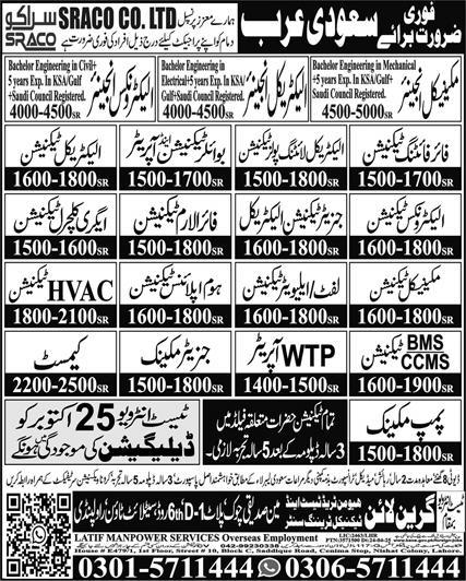 Apply for multiple technician and engineer positions in Riyadh with Latif Manpower Services (posted 24…