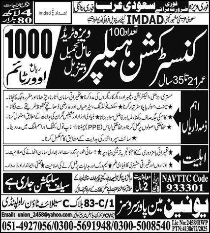 Union Manpower Services is hiring Construction Helpers / Construction Labour for Riyadh, Saudi Arabia (apply…