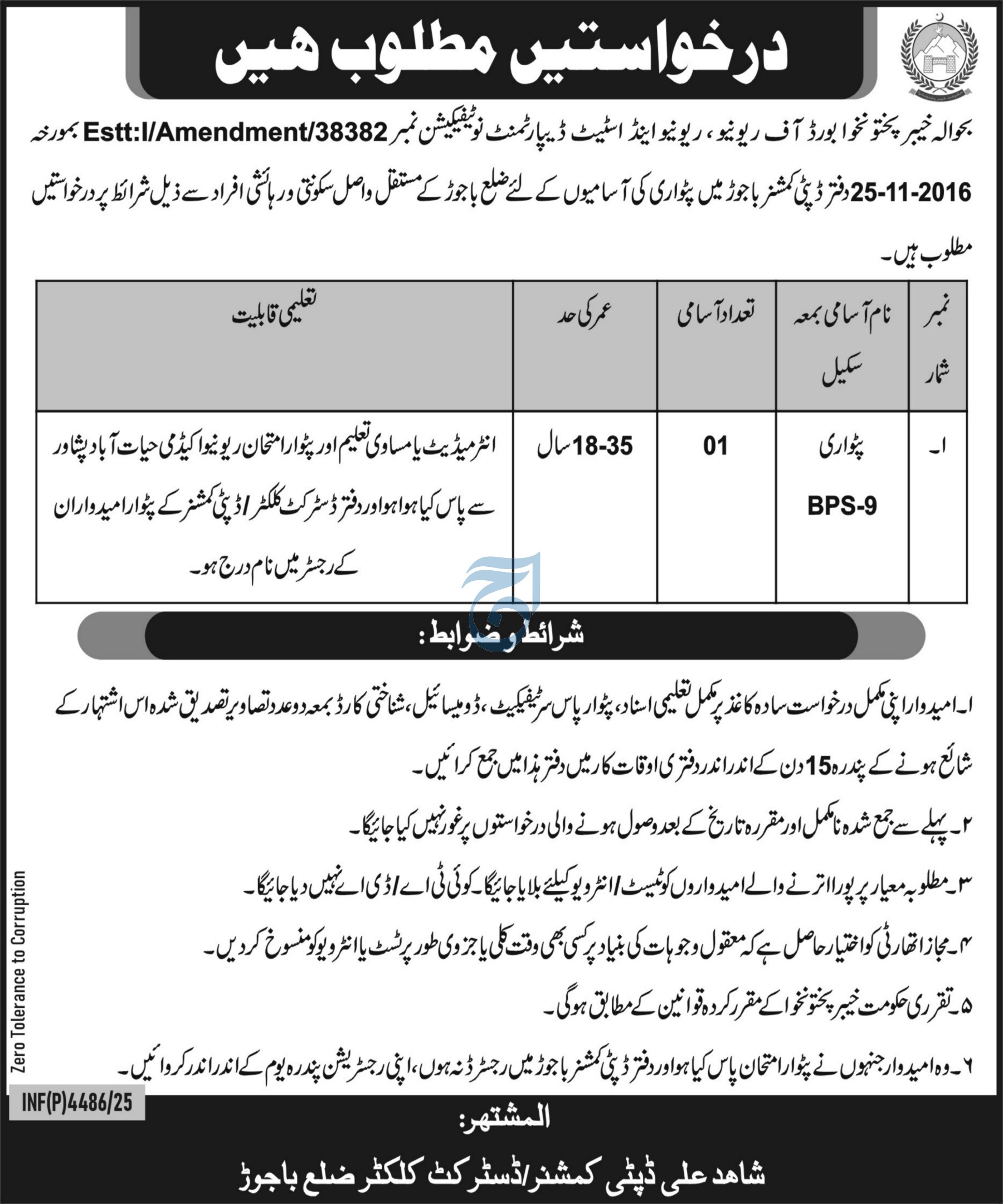 Apply for Patwari vacancies at Board of Revenue & Estate Department Bajaur (2025). Positions open…