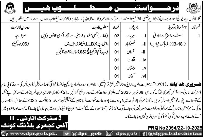 Apply for Assistant District Attorney (BPS-18) — Law & Parliamentary Affairs Department Quetta. Ad-hoc 6-month…