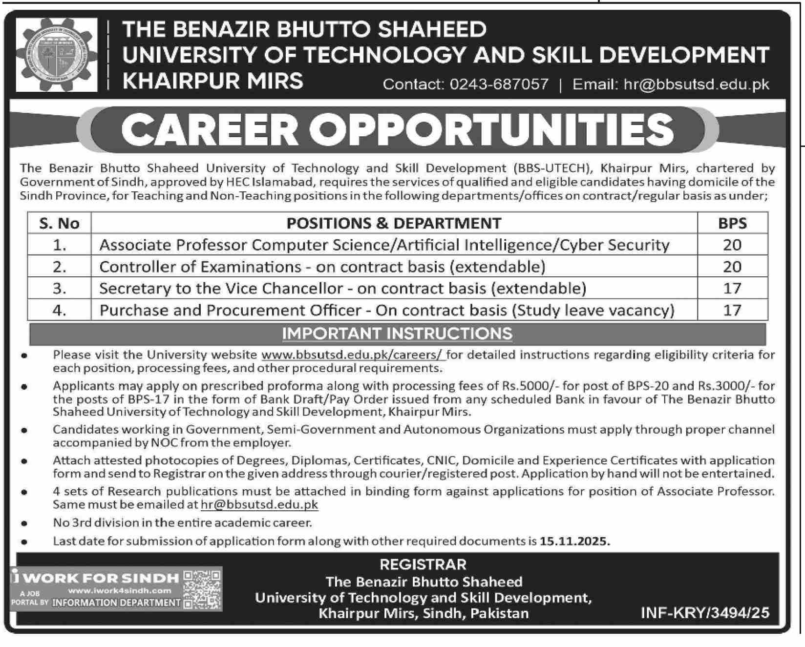 Apply for multiple teaching and non-teaching positions at Benazir Bhutto Shaheed University of Technology &…