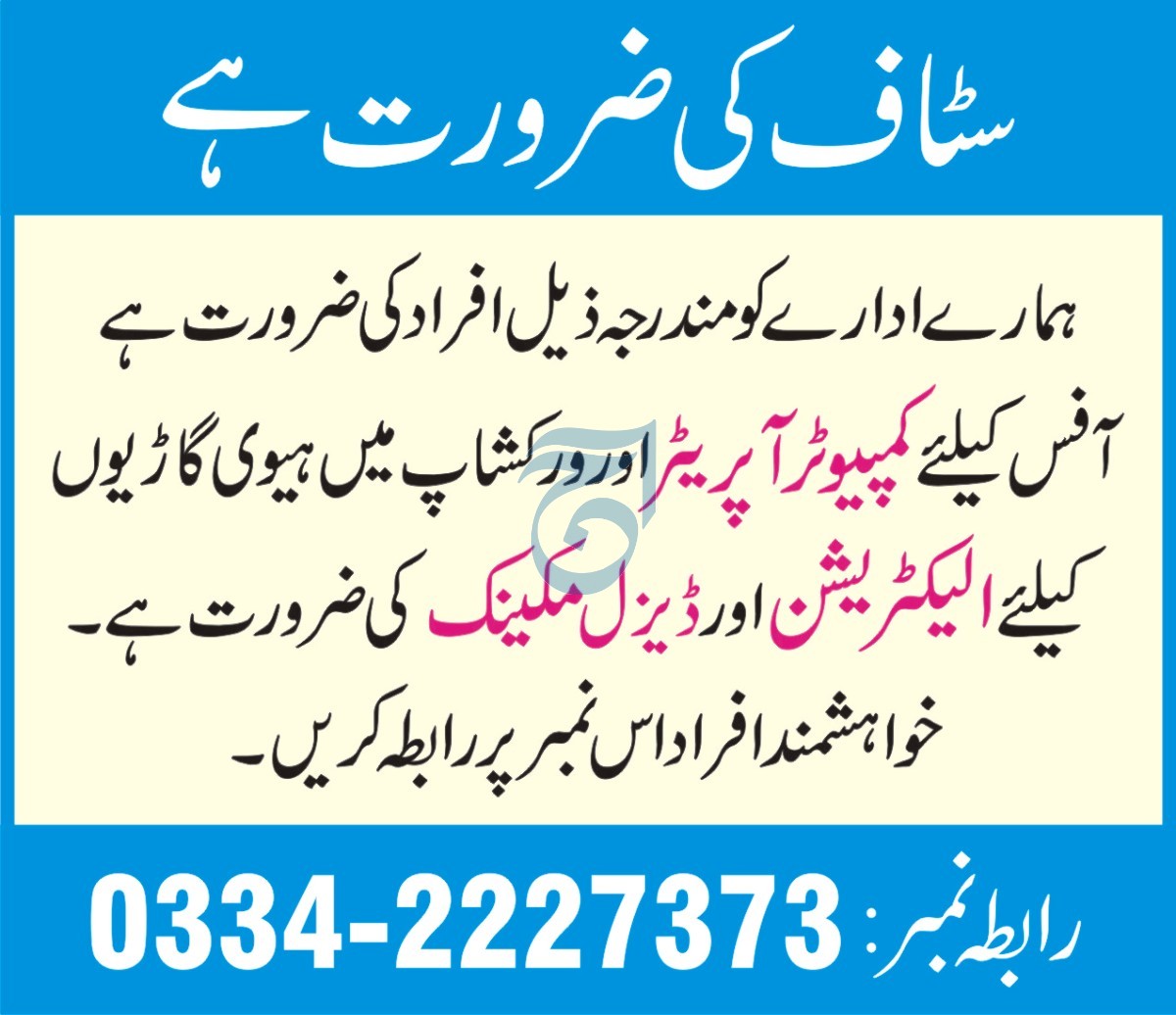 Apply for Private Group jobs in Peshawar 2025 for Electrician, Diesel Mechanic and Computer Operator.…