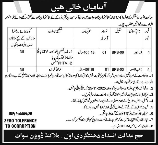 Apply for Driver (LTV/HTV) and Naib Qasid positions at Anti Terrorism Court, Malakand Division (Swat).…