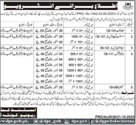 Balochistan Revenue Authority Quetta invites eligible candidates for clerk, accountant, data entry operator, cashier and…