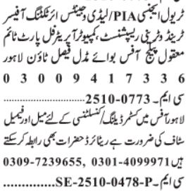 Apply for Air Ticketing Officer, Computer Operator, Receptionist and other positions in Lahore (Faisal Town).…