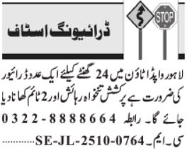 Apply for Driver & House Driver positions (House Wapda Town, Lahore) — attractive salary, free…