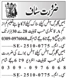 Apply for Office Boy and Stockiest positions in Gulberg, Lahore (2025). Private Company invites Matric/Intermediate…