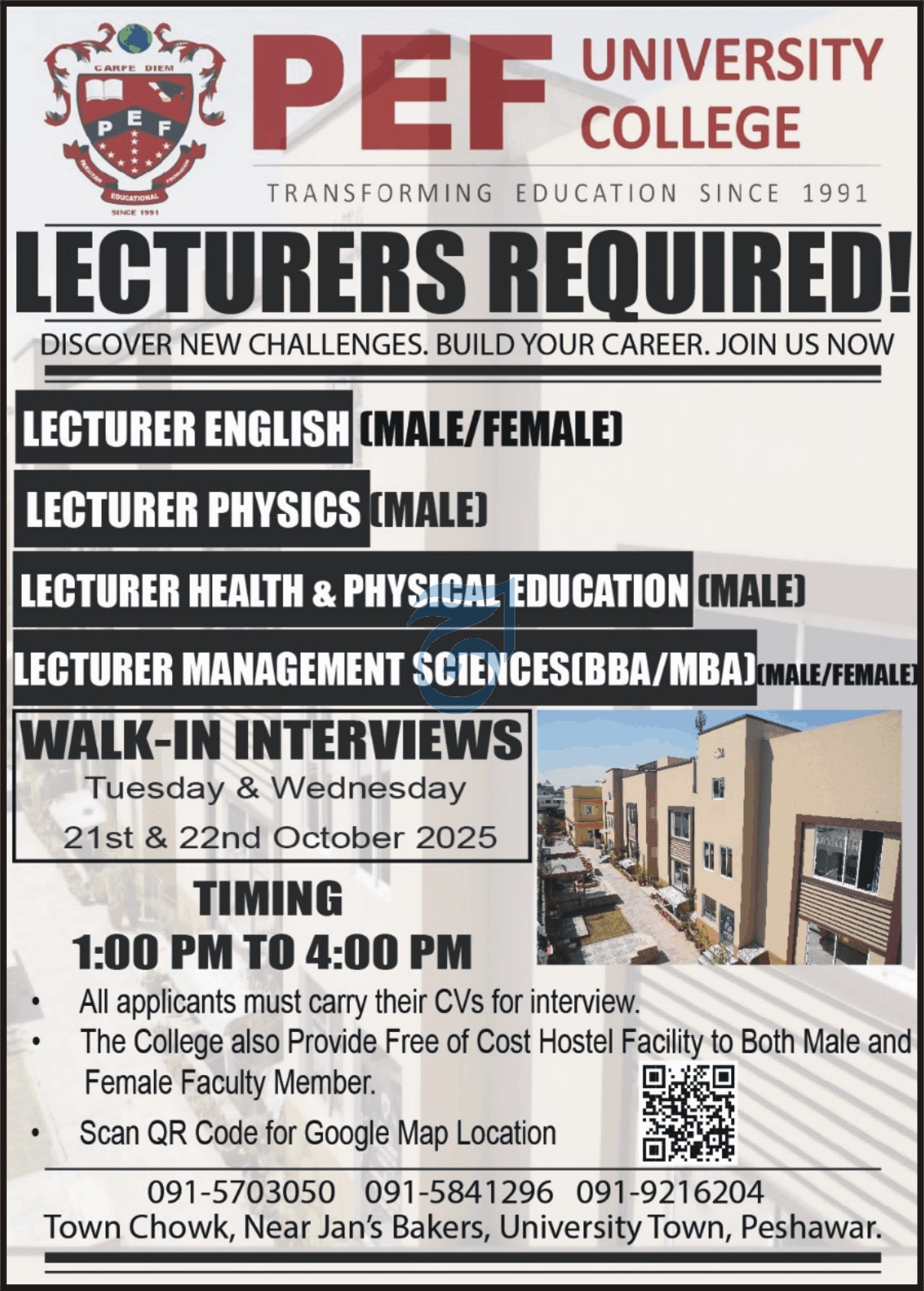 Apply for Lecturer positions at PEF University College Peshawar (2025). Vacancies for English, Physical Education,…