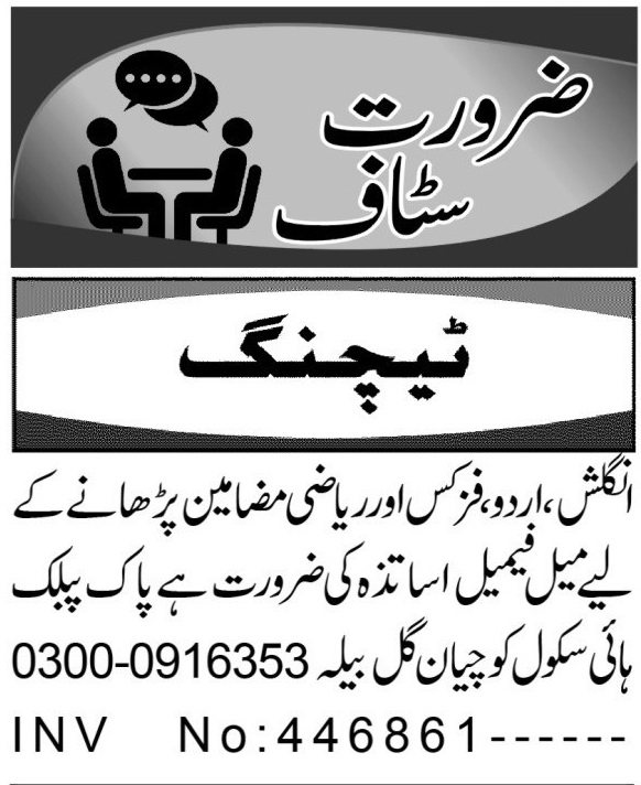 Apply for teaching positions (Physics, Mathematics, English, Urdu) at Pak Public High School Peshawar. Bachelor/Master…